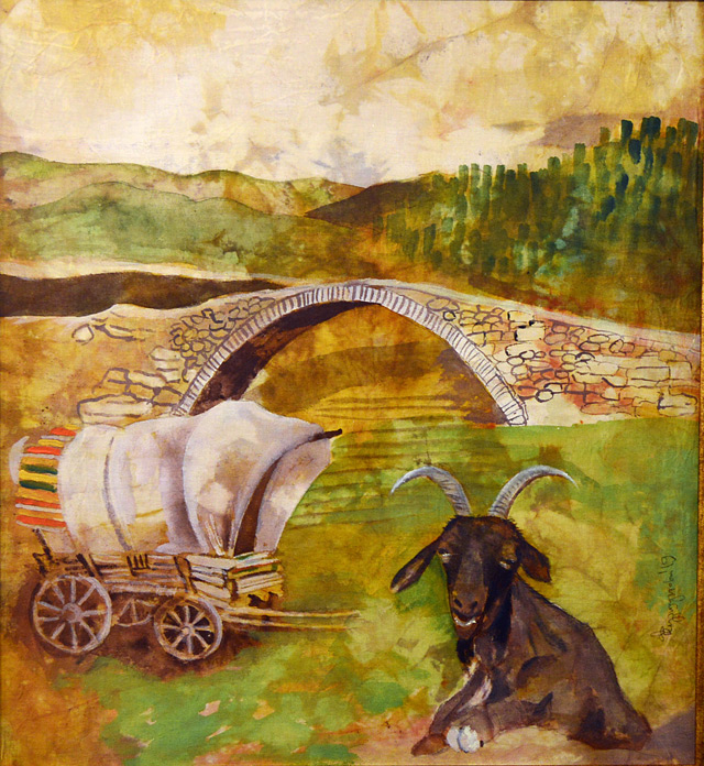 Използваната техника е памучен батик с восък и с акрилни бои.