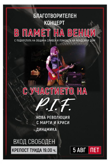 Благотворителен концерт в памет на Венцислав Василев – Венци от Нова Революция и Димо от P.I.F ще се проведе този петък, 5 август, на откритата сцена на Късноантична и средновековна крепост „Туида“.